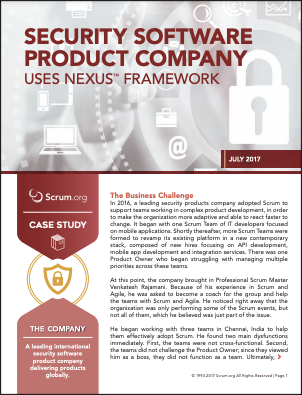 After adopting Scrum in 2016 to improve adaptability in complex development, a leading security software company scaled successfully with Nexus—enhancing responsiveness and coordination across teams.